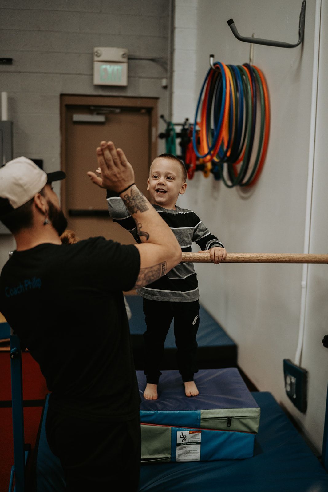 This class is designed for preschool-aged children needing an active, fun adventure coached by trained professionals skilled in supporting the development of children who can use a little extra attention. We have collaborated with Developmental Pathways to support our coaches understanding and training. They will continue to be involved in evaluating and growing our program capabilities. While we will be teaching movement with the concepts of gymnastics, we understand that we need to meet every child where they are. Our goal will be to challenge your child to grow while interacting with new friends independently from you, and having a blast while doing it!!